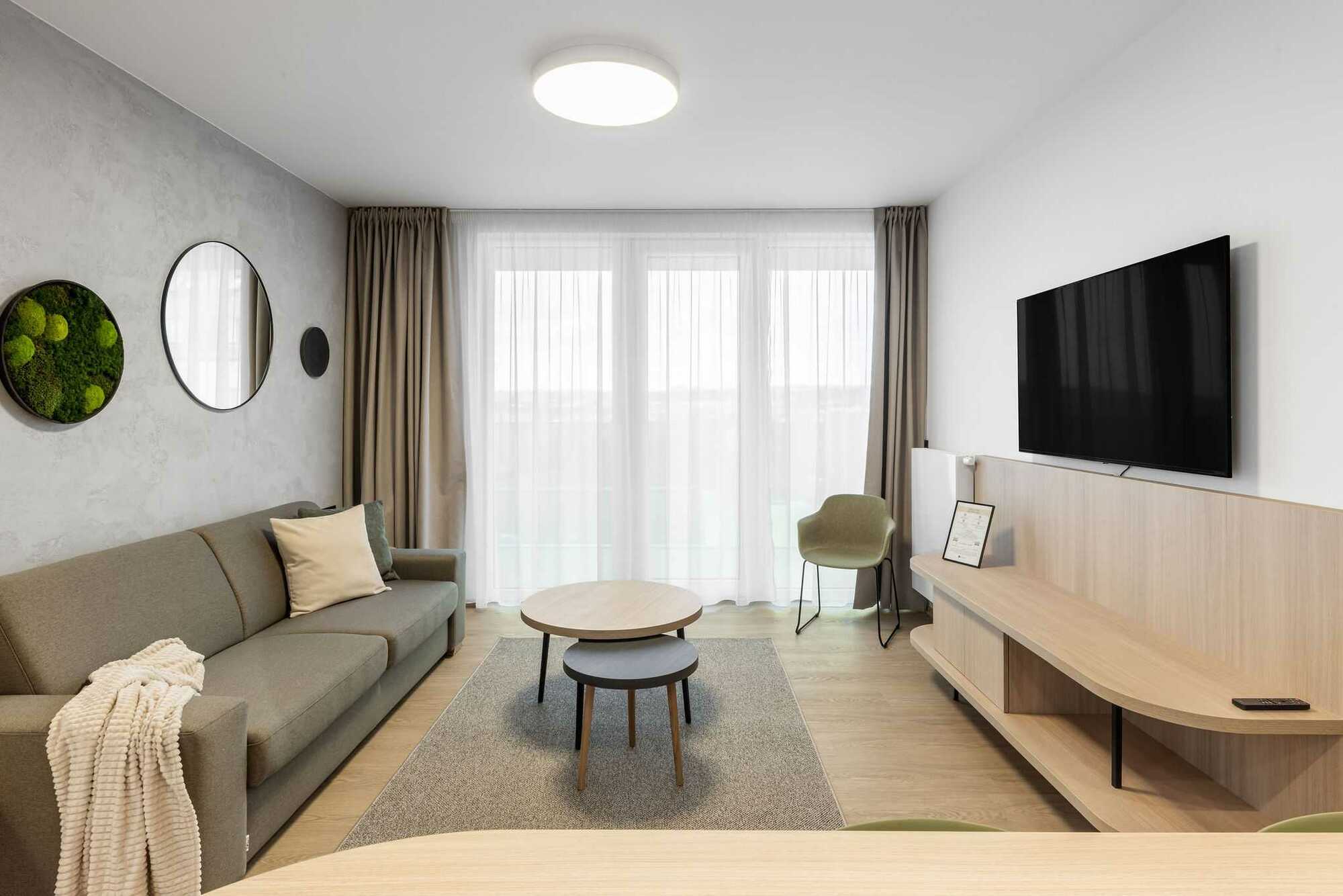 Náš největší, třípokojový apartmán s balkonem a dvěma koupelnami, nabízí komfortní ubytování až pro 7 osob (2 manželské postele nebo 4 samostatné postele, extra samostatná postel, rozkládací pohovka s plnohodnotnou matrací). Je tak ideální volbou pro větší rodiny či skupiny přátel. Stylový a velkoryse řešený interiér přeje společným chvílím, zároveň však poskytuje každému hostu dostatek soukromí a prostoru k odpočinku. Balkon, dvě komfortní ložnice a elegantní obývací část vytvářejí prostředí, kde se každý den stává zážitkem.